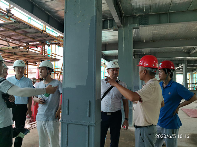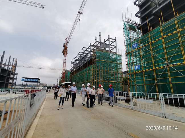 考察團(tuán)主要參觀了主體結(jié)構(gòu)已經(jīng)施工的21#-22#樓,提出了鋼結(jié)構(gòu)主體的安裝進(jìn)度、鋼筋桁架樓承板與普通現(xiàn)澆板性價(jià)比、主體垂直度、柱芯灌注混凝土、防腐防火等問題,我司方總針對(duì)這些問題分別做了詳細(xì)講解。