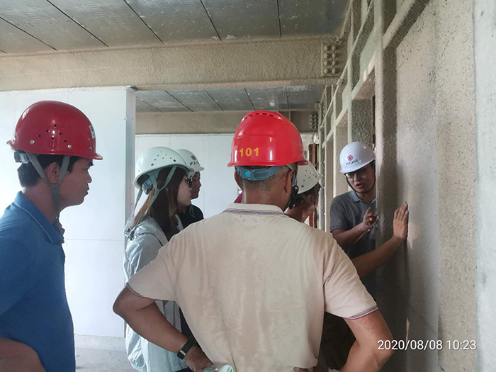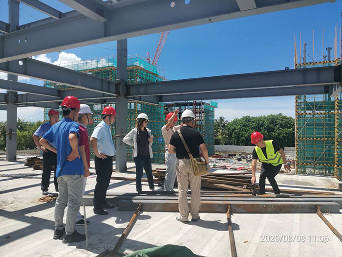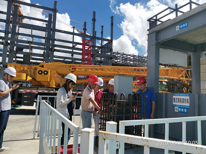 在施工現(xiàn)場,雙方就工程防腐防火要求、鋼柱鋼梁防火涂料、內(nèi)隔墻ALC墻板、樓承板鋪設(shè)工藝、主體鋼柱、鋼梁焊接工藝等進行了深入交流。改進后的不落地支撐體系,能有效的縮減施工版面的移交時間,加快主體安裝進度;高標準的鋼柱校正測量要求,大大減少了現(xiàn)場螺栓擴孔率,保證了主體質(zhì)量。