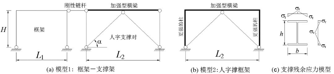 首先,我們來看看真實(shí)的框架-支撐雙重抗側(cè)力結(jié)構(gòu)的抗側(cè)力性能。圖1是兩種雙重抗側(cè)力結(jié)構(gòu)形式: