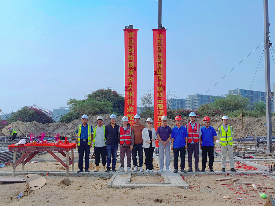 2023年2月25日上午10點08分,在甲方、監(jiān)理等領導的共同見證下,由浙大鋼構承建的海南綠城藍灣小鎮(zhèn)繼2019年開工的香樟苑項目以來,第六個鋼結構裝配式高端住宅項目——觀云居鋼結構工程項目首根鋼柱吊裝順利完成,開工儀式圓滿舉行,項目宣告正式進入鋼結構主體施工階段。