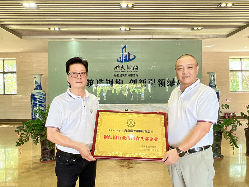 最后海南省溫州商會會長劉漢博代表商會特授予我司“鋼結構行業(yè)海南省頭部企業(yè)”稱號,走訪活動圓滿結束。對此稱號我司表示榮幸之至,在公司成立至今我司曾獲得中國建筑金屬結構協會頒發(fā)的“中國鋼結構金獎”、“中國建筑金屬結構協會科學技術一等獎”等榮譽,也是國家級裝配式建筑生產基地,這是肯定,也是激勵,浙大鋼構必將砥礪前行,堅持自身特色,抓住機遇,繼續(xù)穩(wěn)步、持續(xù)、健康的發(fā)展。