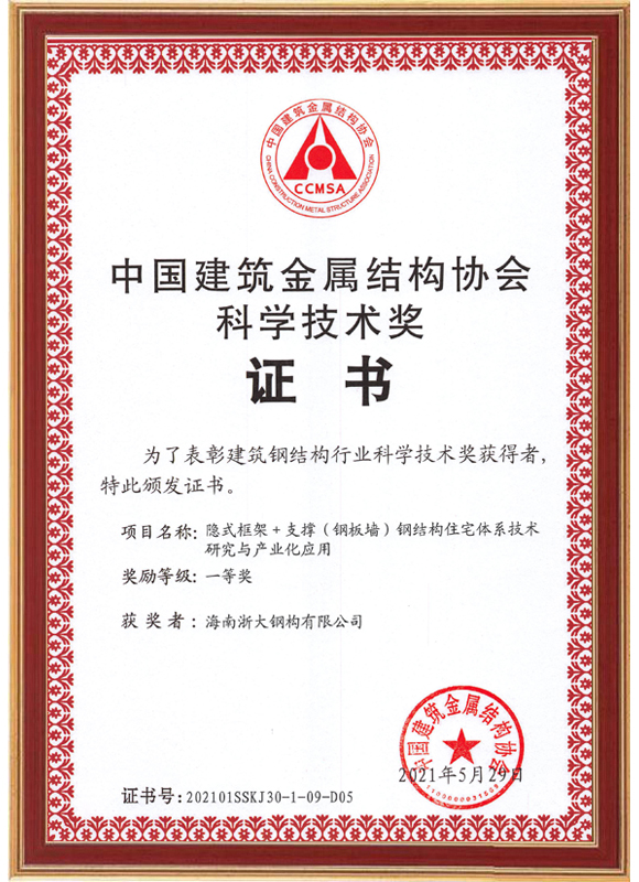 中國建筑金屬結(jié)構(gòu)協(xié)會科學(xué)技術(shù)獎