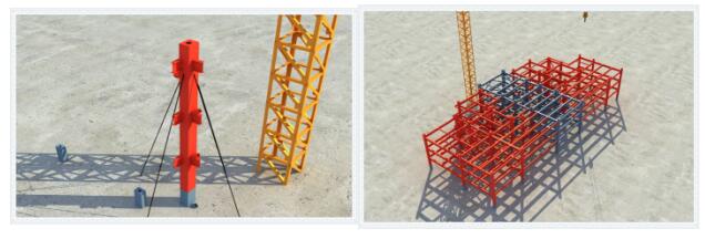2、隱式框架-鋼支撐結(jié)構(gòu)體系以三層為一個(gè)單元施工,鋼梁一次吊裝三層,吊裝完成后安裝、焊接,樓板采用自承式鋼筋桁架樓承板,三層同時(shí)澆筑,最終達(dá)到8-10天1個(gè)單元的施工速度,平均三天一層。